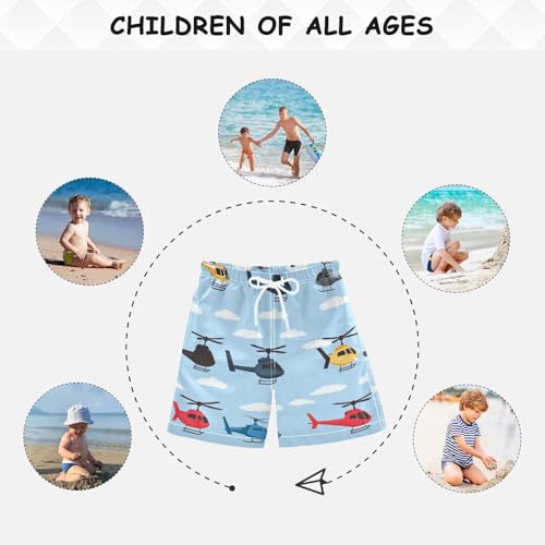 Boys Beach Board Shorts Helicopter Plane Cartoon Swim Trunk Teen Swimwear 8-16Y Multicolor