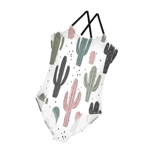 Cactus Cute White Kids One Piece Swimsuit Girls, Summer Beach Apparel, 3-10 6