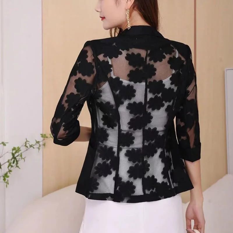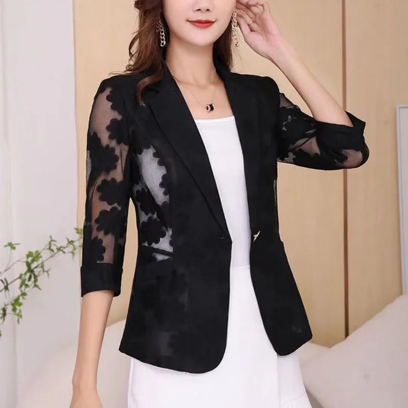 Women's Single Button Lace Blazer Coat Slim Fit Open Front Work Office Jacket Top with Pocket 1