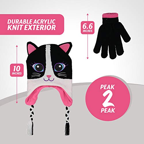 PEAK 2 PEAK Girls Cat Face Beanie Winter Hat and Glvoes Cold Weather Set, Age 4-7