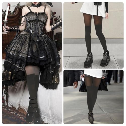 Fabric type: 65% Rayon, 25% Polyamide, 10% SpandexCare instructions: Hand Wash OnlyOrigin: ImportedJoin Prime Cancel anytimeAll-in-one panty hose and over the knee socks, getting rid of always slipping down while keeping sexy appearance of thigh highsReinforced panty to help tights enhance durability and combine the sheer stockings with opaque tights to keep gorgeous and warmThe goth tights with wide waistband, stretchy fabric and reinforced toe, helps stay cushy while stay-in-place and more strongVersatible Faux thigh highs is suitable for daily, dripping outfits and also for gothic clothes and costumes for cosplay,delicate look with bootsOne gothic tights per pack, black stockings, one size for ultimate fit, weight for 99-187 lb, height for 5'1-5'9 Perfect for everyday use. premium materials and excellent craftsmanship ensure long-lasting durability.