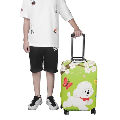【 Spring Dog Butterfly Luggage Cover】Fit quickly and easily in seconds. Durable and washable, 4 sizes available to fit almost any luggage. S: fit 19-21 inch luggage, M: fit 22-24 inch luggage, L: fit 26-28 inch luggage, XL: fit 30-32 inch luggage.【Easy Zipper Access & Installation】Features convenient zipper closures on the sides for side handles and a large top opening for the telescopic handle. Double-stitched all over, full of stretch and high elasticity, ensure your suitcase stays shut during the trip.【Superior Scratch & Dust Protection】Crafted from thick, durable material to shield your suitcase against scratches, dust, dirt, and minor impacts during transit and storage, keeping it looking new longer.【Washable & Reusable Suitcase Cover】Made from high-quality, stretchable fabric that's easy to clean. Simply machine wash for repeated use, offering a sustainable and economical travel accessory.【modern Luggage Protector】Available in various vibrant colors and patterns. Easily identify your bag at baggage claim while adding a personal touch and safeguarding your luggage from wear and tear. Perfect for everyday use. premium materials and excellent craftsmanship ensure long-lasting durability.