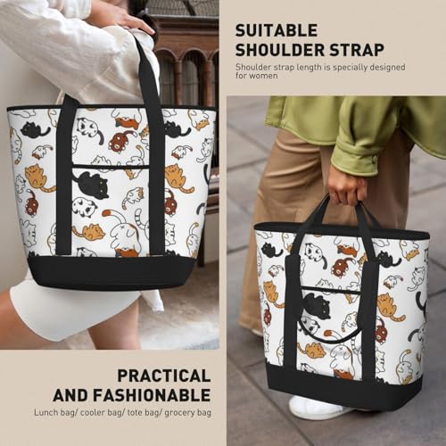 Cute Kitten Cats Pattern Premium Insulated Tote Bag – Heavy-Duty Handles, flawless For Supermarket Trips, Picnics & Daily Commute