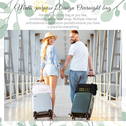 Whaline 2Pcs Wifey Hubby Duffle Bag Set White Black Waterproof Wedding Travel Bag Lightweight Weekender Tote Bag For Bridal Shower Honeymoon Party Organizer Supplies 7