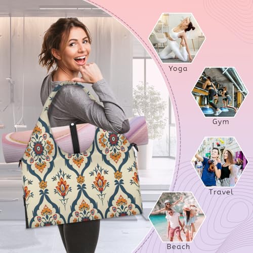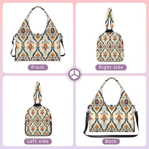Yoga Bag for Women,Waterproof Polyester Gym Bag Detachable Strap,Shoe Pocket,Double Zipper,Beige Crushed Flower Duffel Bags
