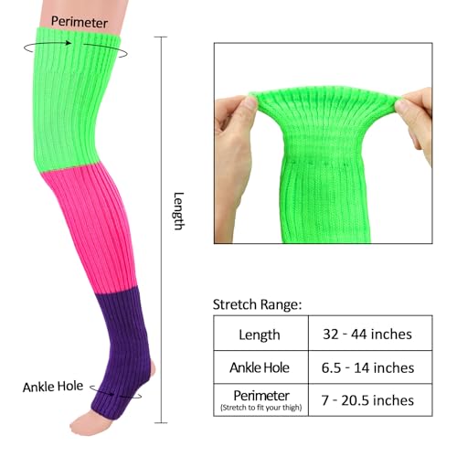 • [Eye-Catching Designs] The whole ribbed design, featuring an anti-slip cuff and ankle stirrup, ensures your socks stay in place while allowing full stretch and comfort. These knitted leg sleeves fit perfectly without restricting movement. Stand out from the crowd with our vibrant color-blocked styles, adding a playful touch to any outfit. Elevate your daily wardrobe with this must-have accessory that combines functionality with a burst of lively style, expressing your exceptional personality.
