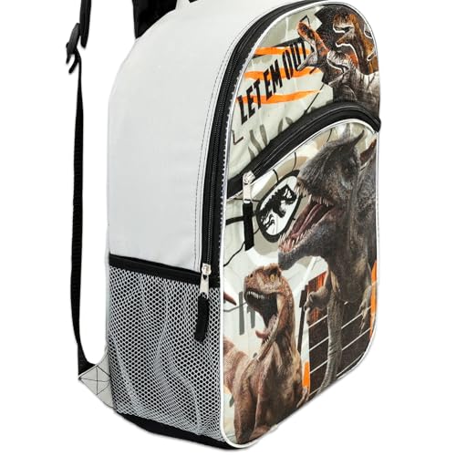 Jurassic World Backpack for Boys - Bundle with 16 T-Rex School Backpack, Water Bottle, Stickers, More | Jurassic World Backpack Boys, Girls, Kids.This Jurassic World backpack measures 16 x 12 x 4 -- the outstanding size for kids. This Jurassic World backpack comes with adjustable shoulder straps and front pocket.Sure to be a hit with all Jurassic World fans, this Jurassic World backpack set makes a great gift for anybody who loves Jurassic World and pairs perfectly with all other Jurassic World merchandise.This Jurassic World backpack set also includes a Beach Kids water bottle, Jurassic World stickers, and a Rex-Man door hanger. This set is perfect for Jurassic World school supplies.Officially licensed Jurassic World school supplies, great to take anything you need with you on the go, to school, work, or anywhere else.Caution: Entanglement Hazard. Keep away from very young children. Do not place around neck. WARNING: CHOKING HAZARD—Small parts. Not for children under 3 yrs. Perfect for everyday use. premium materials and excellent craftsmanship ensure long-lasting durability.