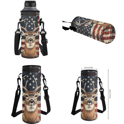 More information about Showudesigns American Flag Deer School Backpack and Lunch Box Set for Girls Boys Elementary Bookbag Lunch Bag Pencil Case Water Bottle Holder 4 In 1 Kids School Bag with Front Pocket Satchel Rucksack