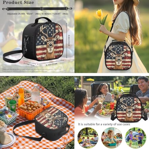 Showudesigns American Flag Deer School Backpack and Lunch Box Set for Girls Boys Elementary Bookbag Lunch Bag Pencil Case Water Bottle Holder 4 In 1 Kids School Bag with Front Pocket Satchel Rucksack 3