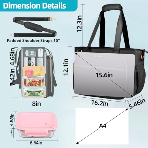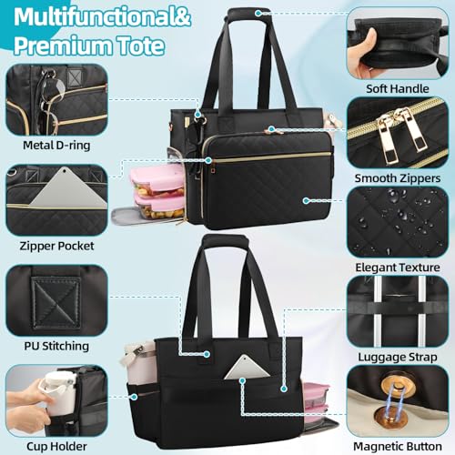 must-have ! Lunch Work Tote Bag for Women with Accordion File Organizer Pocket, 3 in 1 Daily Tote Bag with Insulated Lunch Compartment& 15.6 Inch Laptop Compartment for Business Teacher Nurse (Black)