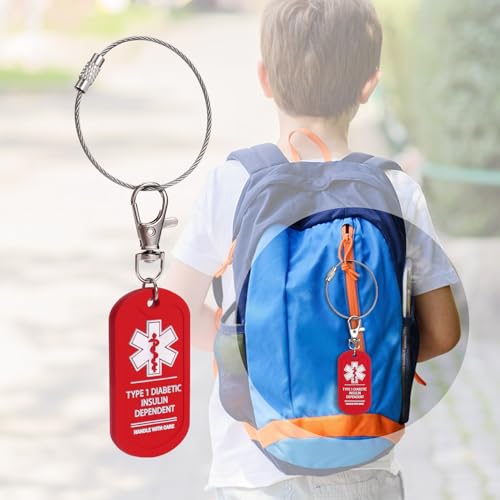 Color: RedMaterial: SiliconeBrand: MEDMAXFinish Type: UncoatedNumber of Labels: 2Thick and Flexible: Each tag is made from long-lasting rubber materials with a stainless steel elasticity hook, suitable for the zipper of your bag, pouch, wallet, solid and easy to use. This product is ideal, and much better than most fragile stickers. Be confident knowing that these dedical alert tags will last long, to help live through all the handling of your medical equipment, and help keep them safe and in good condition.Bright Red with Dual-Side Engraving: Our medical inside tags stand out with their bright red color and white lines, significantly increasing visibility and recognition. The dual-side engraving features a medical alert symbol and and lettering of TYPE 1 DIABETIC INSULIN DEPENDENT, is the perfect way to increase awareness and ensure your medicine is easily accessible to others in case of an emergency.Durable Strap: Each package contains 2 luggage tags that are removable with a stainless steel string wire loops key ring, that will fit most suitcases and bags, and can be attached to almost any strap or handle.Safety and Less Worries: Weather your are traveling far or close, always make sure to take along your medical equipment or supplies. Now you can travel with less worries, as others will surely handle your baggage with care and attention. Each medical luggage tag is bright for optimum visibility to others.Great for Travel: Have you ever worried about your bag that with medical supplies inside get damaged while traveling? These medical inside tags are the perfect solution. They will help notify others that your bags are fragile and to be handled with care and attention. Keeping your luggage in good condition is as easy as this. Just attach these tags to your baggage! Perfect for everyday use. supreme materials and excellent craftsmanship ensure long-lasting durability.