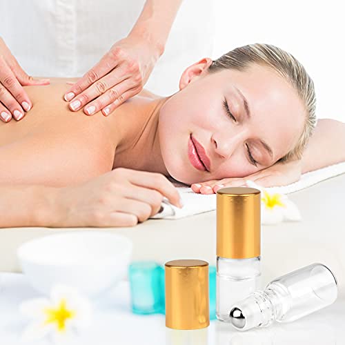 3ml Roller Bottles 20 Pcs Clear Glass Roll on Bottles Refillable Essential Oil Perfume Rollerball Bottles Container vial (gold cap) 5