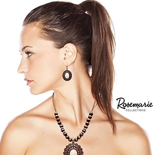Rosemarie & Jubalee Women’s Cowgirl Chic Western Style Statement Concho Howlite Stone Pendant Necklace Earrings Set, 18"-21" with 3" Extender (Natural White Howlite Copper Tone)