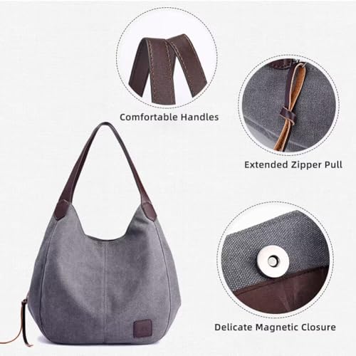 Canvas Tote Bag: Made of soft and thick canvas, polyester lining, smooth zipper, leather handle, fine stitching reinforcement, ensure to provide you long and comfortable use.Retro Handbag: Retro canvas fabric and shape, 1 spacious main zipper pocket and 2 magnetic pockets to organize your belongings, brown leather handles feel comfortable in your hand, suitable for daily, work, travel, shopping, dating and many other occasions.Multi-pocket Shoulder Purse: A total of 6 pockets, 1 main zipper pocket, 1 interior zipper pocket, 2 interior open pockets, 1 front magnetic pocket, 1 back magnetic pocket, can accommodate iPad, cell phone, wallet, umbrella, purse, etc. The multi-pocket handbag can reasonably organize your items, keep them organized and easy to access.Lightweight Everyday Bag: (L) 11 x (W) 5.1 x (H) 11.8 , handles height: 7, weight: 0.8 (lb). Spacious and lightweight tote bag, comfortable to carry, plus the handle size is easy to convert into a handbag or shoulder bag, providing you with a comfortable carrying experience according to your needs.【Ideal Gift Choice】 Vintage, trendy, lightweight ladies canvas handbag, can match with your multiple outfits, add your elegance and charm, also ideal gift for friends, family, colleagues on birthday, Christmas, Valentine's Day, Thanksgiving, New Year, or just a normal day. Perfect for everyday use. first-class materials and excellent craftsmanship ensure long-lasting durability.