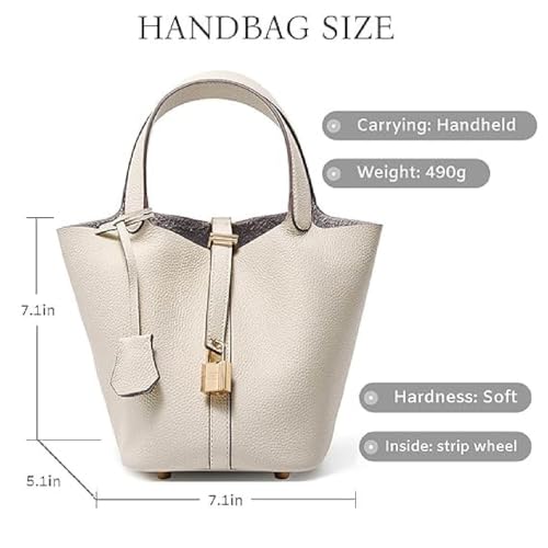 Genuine Leather Bucket Bag with Lock Closure & Removable Insert, Top Handle Shoulder Handbag for Women, Versatile Tote Style