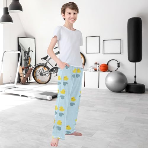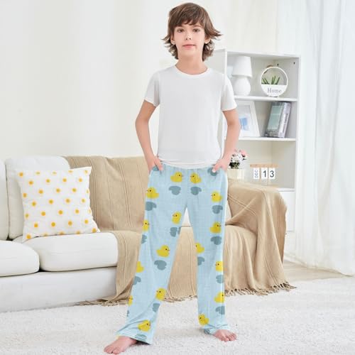 Boy's Pants Yellow Duck Toy Swim Pool Jogger Pants Elastic Waist Long Bottoms Trousers with Pockets 6-14 Years 7