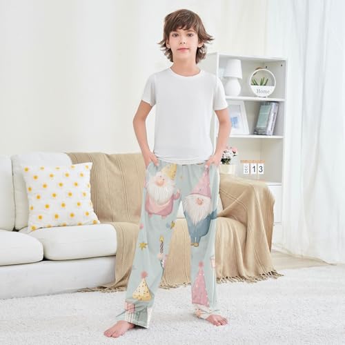 Gnome and Cake Boys Long Pants silky Trousers Elastic Waist Kids Lounge Bottoms with Pockets S-XL