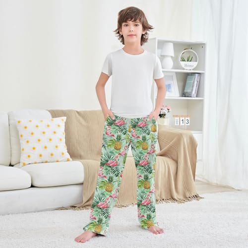 Pajama Pants Pink Flamingos Palm Pineapples PJ Bottoms Sleepwear Lounge Sleep Pant with Pockets