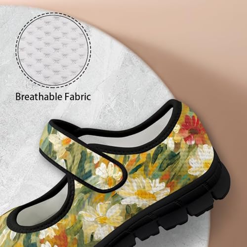 JoyLamoria House Art Flower Pattern Womens Shoes Mesh Dress Loafers Y2K Casual Cute Ballet Travel