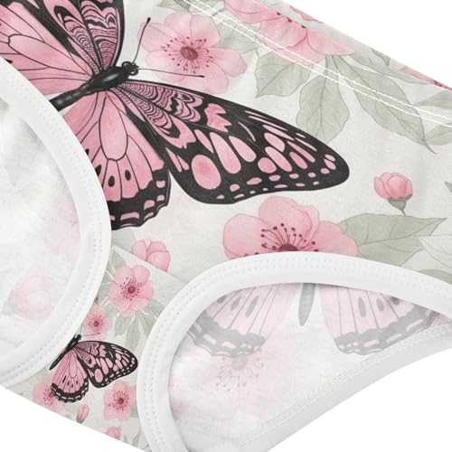 Butterflies Flowers Pale Leaves Toddler Girl Undies, Cotton Girls Underwear, 2T–8 Years 4