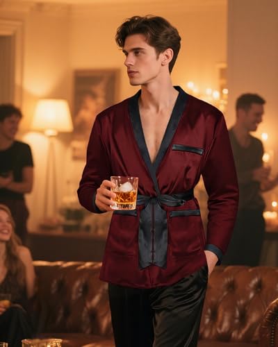 • Occasions: Men's satin smoking robe is flawless for various occasions, including bathing, showering, loungewear, poolside, hotel, vacation, party, role-playing, sauna, spa, themed party, sleepover party, and leisure time. This lightweight robe is suitable for all-day wear.
