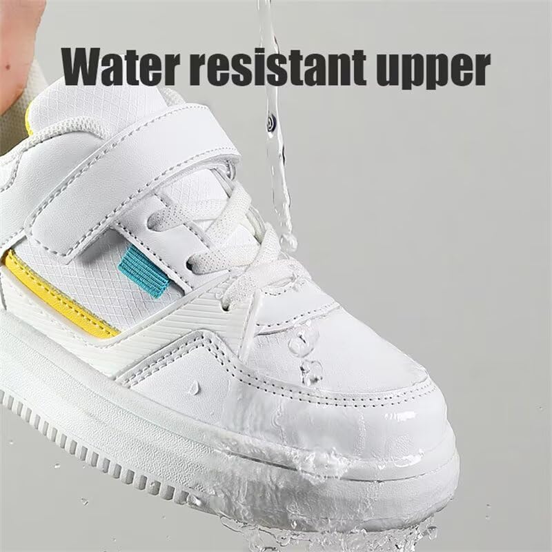 • The synthetic leather upper can prevent kid's feet from getting damp on rainy days