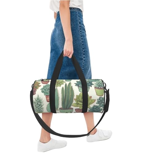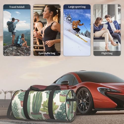 Travel Duffel Bag Sports Gym Bag With Shoes Compartment,Lightweight Overnight Weekender Bag Cactus Succulents Yoga Gym Sports Bag For Men Women