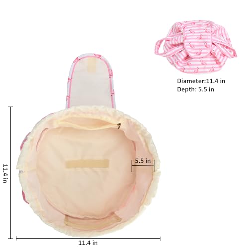 Large Barrel Drawstring Makeup Bag Travel Cosmetic Bag for Women - Portable Make Up Organizer Bag for Skin Care & Toiletries with Brush Holder & Pouch (Pink)