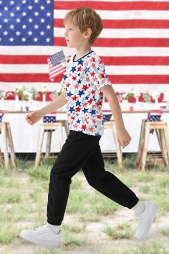TMSD Kids Independence Day American Flag Short Sleeve T-Shirt Patriotic Tee Tops Blue and Red Stars 3-4 Years