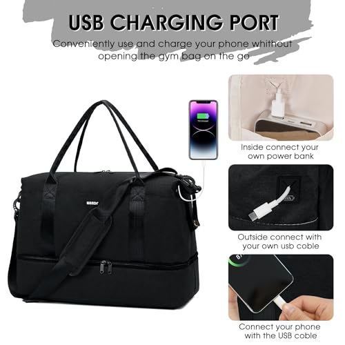 Fabric type: PolyesterOrigin: Imported【Save Your Carry On Charges 】WANDF 18 x 14 x 8 inches travel bag that meets the personal item size requirements of Spirit and Frontier Airlines. It can be placed under seat to save your oversize charges. (Patent Pending)【Wet Pocket & Shoe Compartment 】The interior design of WANDF overnight bag includes a wet pocket for storing damp towels, swimwear, and other wet items, effectively separating your dry and wet belongings. The bottom features a separate shoe compartment with breathable vents, accommodating various sizes of slippers, athletic shoes, high heels, leather shoes, and more.【Travel Friendly】Our airplane travel duffel bag is designed with an external USB charging port, providing on-the-go device charging for added convenience during your journey. The trolley sleeve on the back fits various rolling suitcase sizes. Equipped with an adjustable and detachable shoulder strap with shoulder padding, providing you with versatile carrying options.【Extra Laundry Bag & Toiletry Bag】Featuring an additional laundry bag to manage dirty clothes or towels, effectively separating clean items from the soiled ones. With a generously-sized toiletry pouch, you can effortlessly store all your travel grooming essentials. Conveniently separate clean and dirty items, ensuring orderliness during your journey.【Multi-Function Duffel Bag】An ideal solution for toting your gym and travel essentials. This versatile dufffel bag serves as the perfect companion for airplane travel, a spacious gym sport bag, a convenient weekend bag, and a modern beach bag. It suits various indoor and outdoor activities, including travel, sports, weekend getaways, yoga, gym sessions, beach outings, business trips, and everyday use. Perfect for everyday use. premium materials and excellent craftsmanship ensure long-lasting durability.