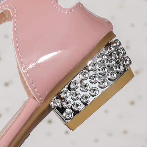 IWIHMIV Girls Square Toe Sandals Low Heels Girls Dress Shoes in Wedding Party Summer Open Toe Ankle Strap Sandals