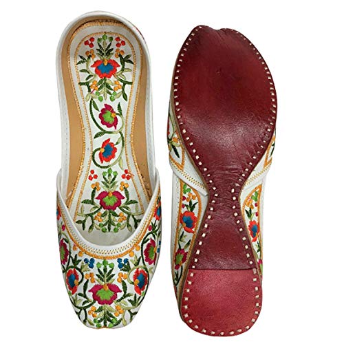 Why Choose Stop n Style Punjabi Jutti for Ladies Mojari Shoes White Floral Multicolor Casual Party Wedding Slip-On Flats?