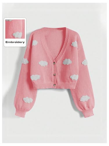 must-have ! SHENHE Women's Cloud Print Button Down Sweaters V Neck Long Sleeve Crop Cardigan Top