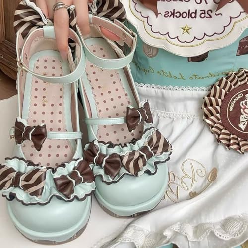 ZQW Women's Kawaii Cute Lolita Chocolate Cake Platform Mary Jane Heels Bowknot Sweet Chunky Wedge Shoes Cosplay Party Pumps