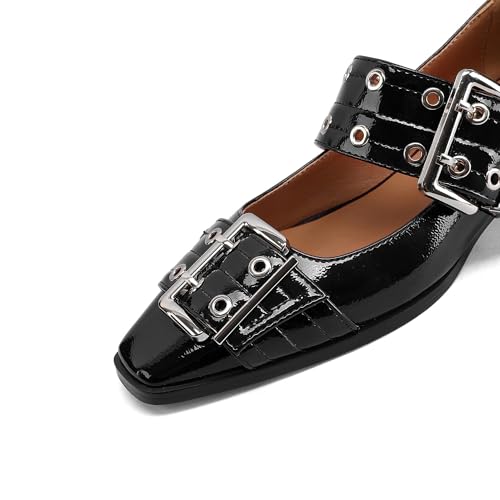 Ballerina Buckle Flats for Women Square Toe Metal Eyelets Low Heel Comfort Ballet Flats 4