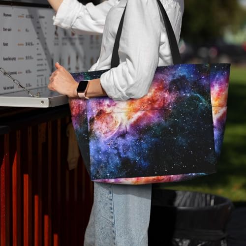 • Two Ways To Carry: The Galaxy In The Universe Beach Bag For Women With Double Handles Makes It More silky For You To Carry. Not Only Can Switch Up Your Style Effortlessly, Also Minimize Your Stress. The Long Shoulder Straps Can Relieve Weight, So Even When The Bag Is Fully Loaded, It Won'T Pressure On Your Shoulders.