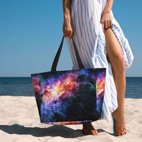 • Extra Large Capacity: The Galaxy In The Universe Large Tote Bag Measures 15" X 17.7" X 6.7", Designed To Hold Everything You Need For A Day At The Beach, A Weekend Away Or A Long Term Travel, Such As Travel Essentials, Cosmetics, Sunscreen, Clothes, And More. The Inner Pocket Keeps Soggy Swimsuits, Towels And Toiletries Separate From Your Dry Belongings.