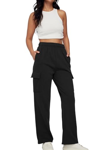 must-have ! Trendy Queen Womens Cargo Sweatpants Wide Leg Baggy Fleece High Waisted Sweats Pants Winter Clothes with Pockets