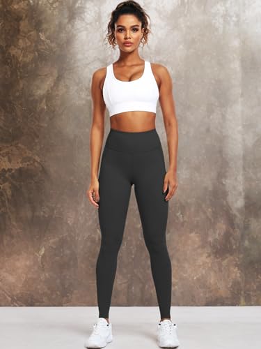 CADMUS Nylon Thick High Waist Yoga Pants with Pockets, Tummy Control Workout Running Yoga Leggings for Women