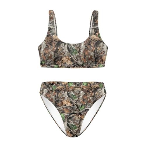 ELEQIN Women Printed Two Pieces High Waisted Cheeky Bikini Sets Low Scoop Crop Swimsuit