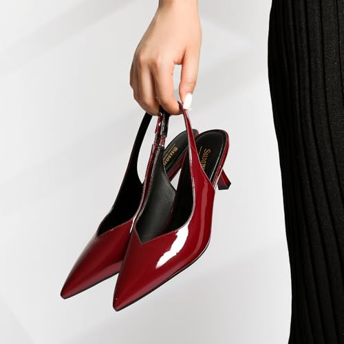 Susanny Kitten Heels for Women Closed Toe Heels Pointed Pumps Sexy Slingback Low Heeled Elastic Strap Comfort for Wedding Work Party Evening Prom Formal Dressy Shoes 6
