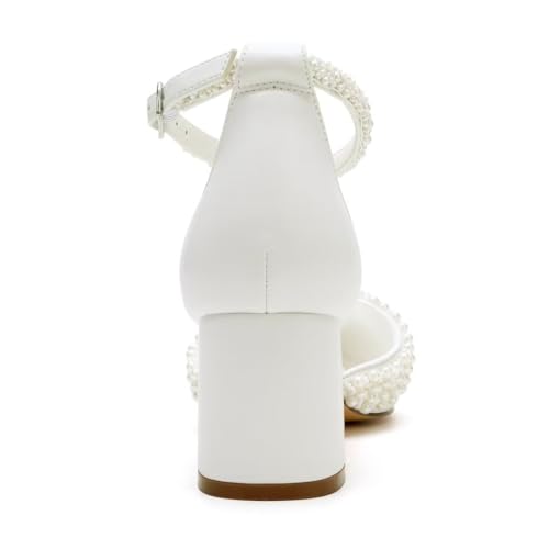 Block Heel Wedding Shoes for Bride Pointed Toe Pearl Heels Ankle Strap Wedding Heels Bridal Shoes