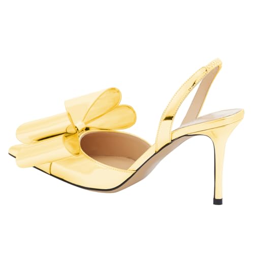 FOWT Women Bow Pointed Toe Pumps Kitten Mid Heel Slingbacks Slip on Elegant Evening Prom Shoes Size 4-16 US 5