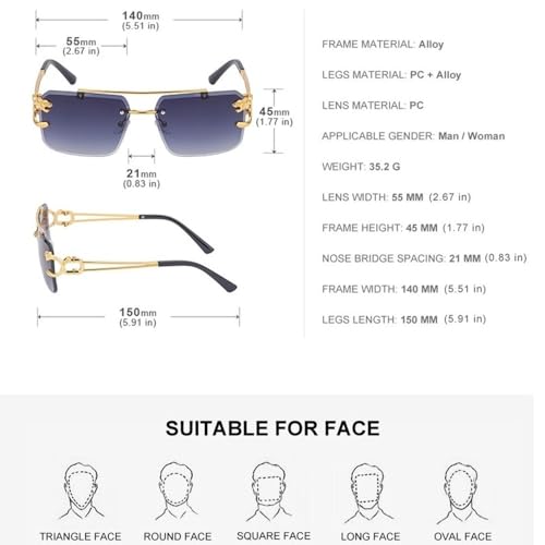 More information about Fashion Leopard Rimless Sunglasses Double Bridges Gradient Ocean Film Shades Luxury double bridge