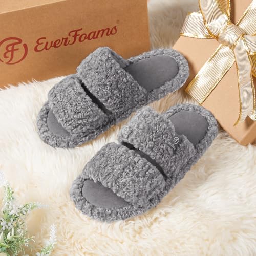 EverFoams Women's Fuzzy Open Toe Slippers Comfy silky Memory Foam Indoor House Shoes