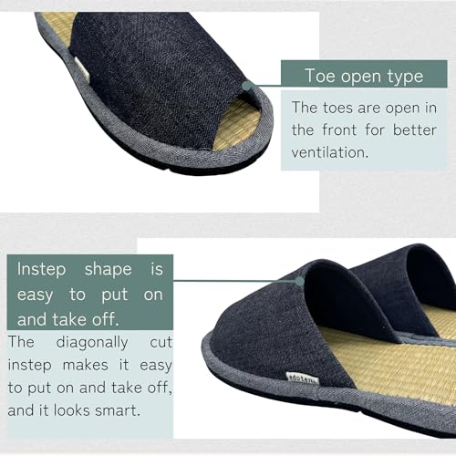 Origin: ImportedOuter material: CottonClosure type: Pull-OnWater resistance level: Not Water ResistantThese are Japanese slippers which we are particular about the design, quality and cushy wearing for relaxing room time. Okayama denim is used for the instep and edge of the slippers and the insole is made of rush.[M](Medium): normal shoes size 24cm - 25cm (9.4 in - 9.8 in)[L](Large): normal shoes size 26cm - 27cm (10.2 in - 10.6 in) [LL](X-Large): normal shoes size 28cm - 29cm (11.0 in - 11.4 in)[Material] - instep and edge : Okayama denim (cotton 100%), - insole : rush, - shoe sole (with a non-slip part) : felt, Made in JapanPlease be careful that the color of the denim at the instep and edge may run by the sweat and the friction. Washing with water is not recommended because of the material. Perfect for everyday use. premium materials and excellent craftsmanship ensure long-lasting durability.