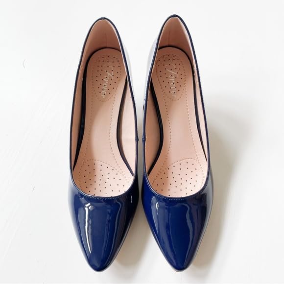 must-have ! Forever Link Women's Pointed Toe Patent Mid Heel Slip On Pump Dress Shoes