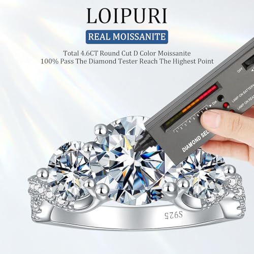 must-have ! 4.6CT 3 Stone Moissanite Engagement Ring, D Color VVS1 Round Cut 925 Sterling Silver Anniversary Wedding Promise Ring for Women, Size 5-10