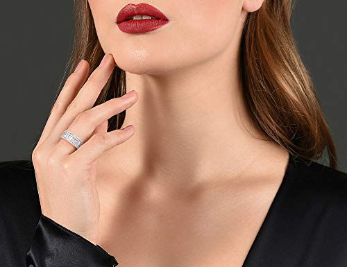 • 18K White Gold Plated Brass Eternity Ring Comes With Emerald Cut High Grade AAA Hand Picked Cubic Zirconia Stones With An extraordinary Sparkle. Stones are assembled secure settings and Gold Plated to ensure a long-lasting and brilliant finish.