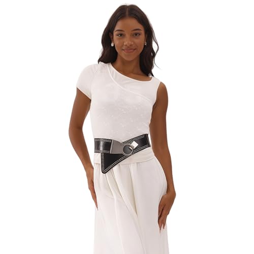 • Fashion retro punk with chic details:The premium metal alloy rivets and sleek buckle design give this 80s belt a fashion retro punk style, adding a bold touch to any outfit, whether casual or semi-formal